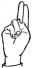 На ћирилици написано АЛЕКСА КРСМАНИЋ састоји се из 14 слова [?]. Исписано ћириличном једноручном азбуком за глувонеме: